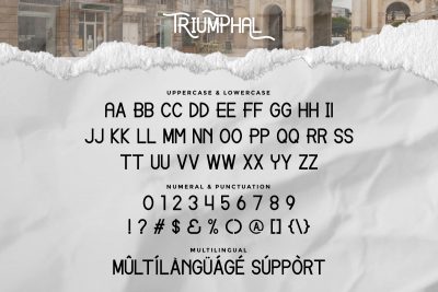 Triumphal Font comes with stylistic alternates characters as we used on the preview cover, you can explore and use it for extra stunning looks. The font works on PC & Mac with Simple installations. Accessible in the Adobe Illustrator, Adobe Photoshop, Adobe InDesign, even work on Microsoft Word. It’s also PUA Encoded Characters – Fully accessible without additional design software.